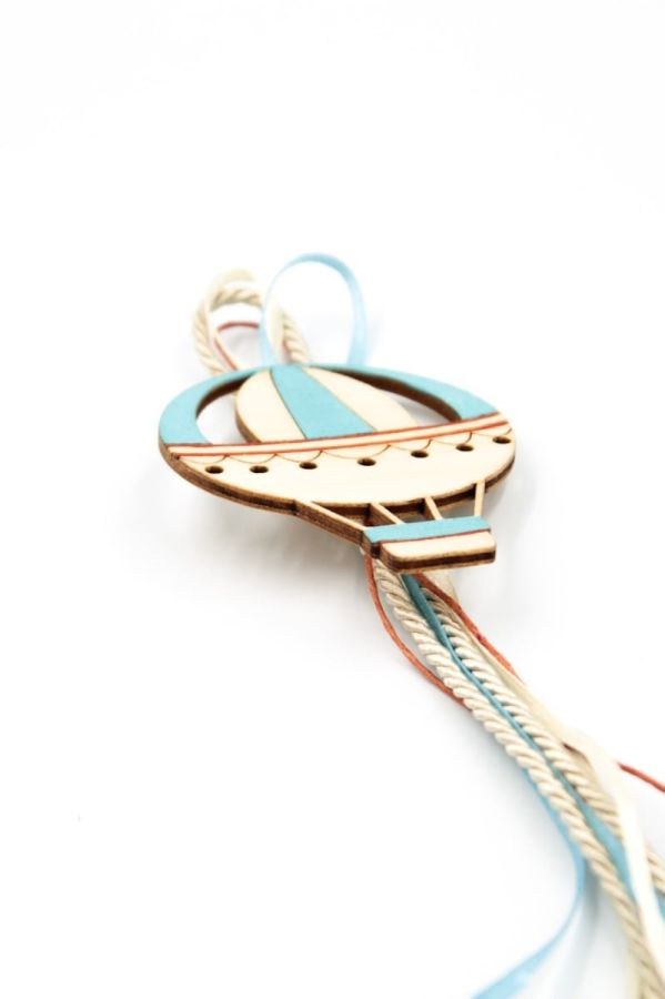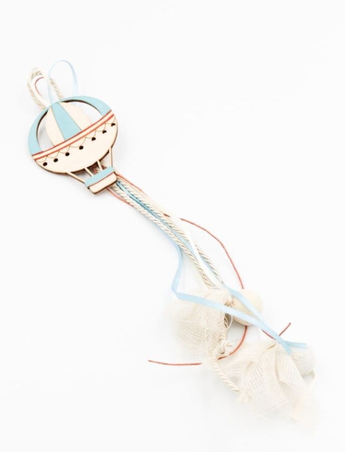Μπομπονιέρα βάπτισης κρεμαστή με ξύλινο αερόστατο.