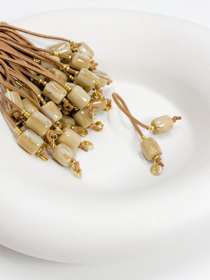 Μαρτυρικό μπεγλέρι με επιχρυσωμένο σταυρό και χάντρα με νερά σε μπέζ αποχρώσεις.