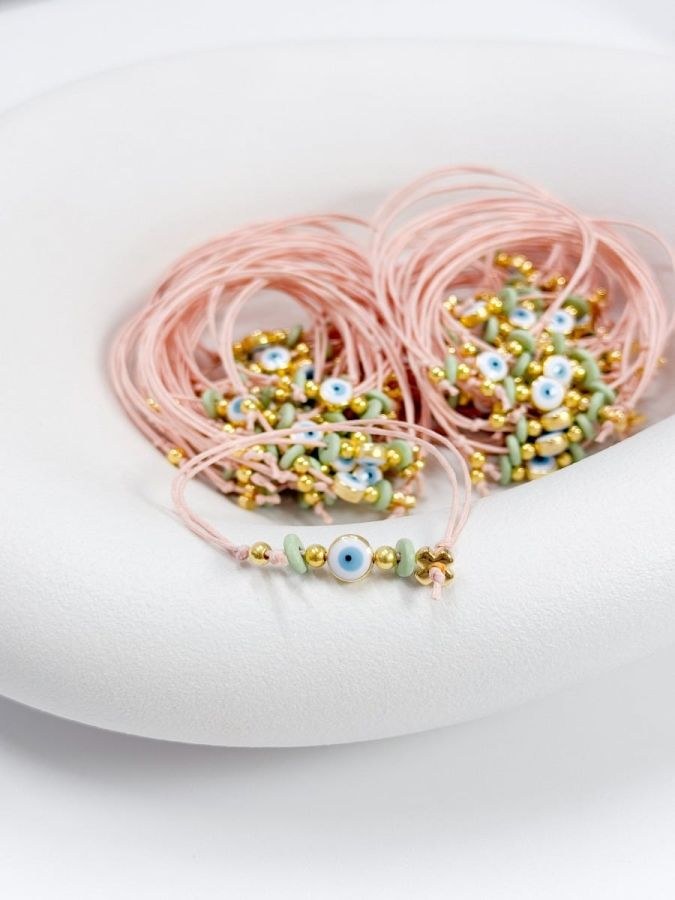 Μαρτυρικό βραχιόλι με επιχρυσωμένο σταυρό,μπλε μάτι, χάντρες και κερωμένο κορδόνι.