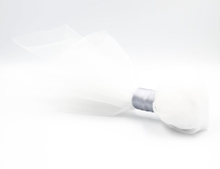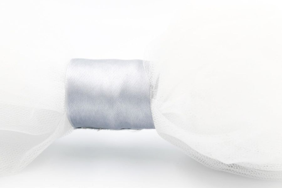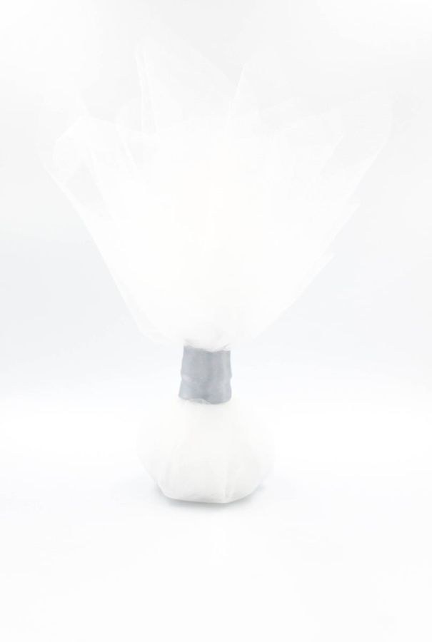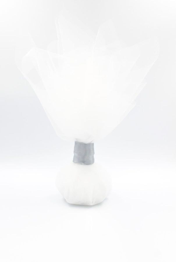 Μπομπονιέρα με 3 τούλια λευκά και σατέν γκρι λαιμό.