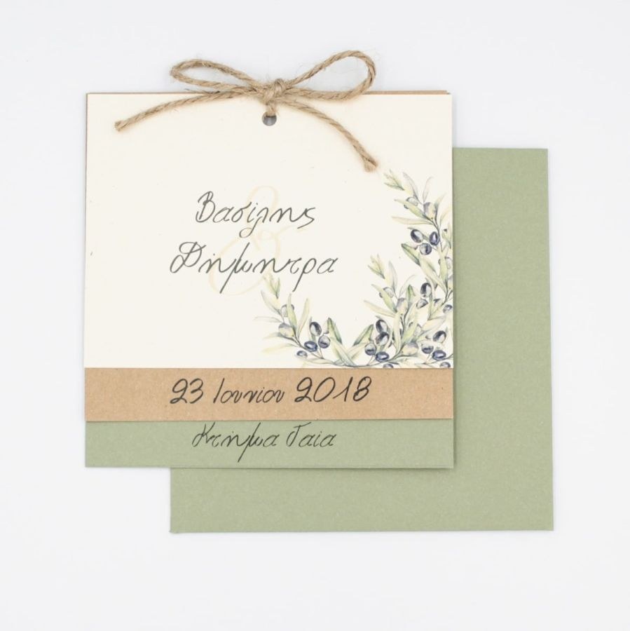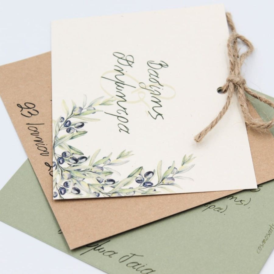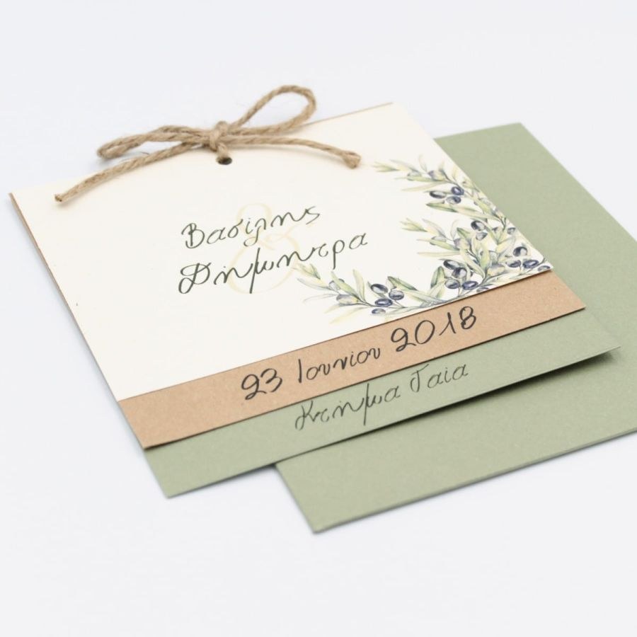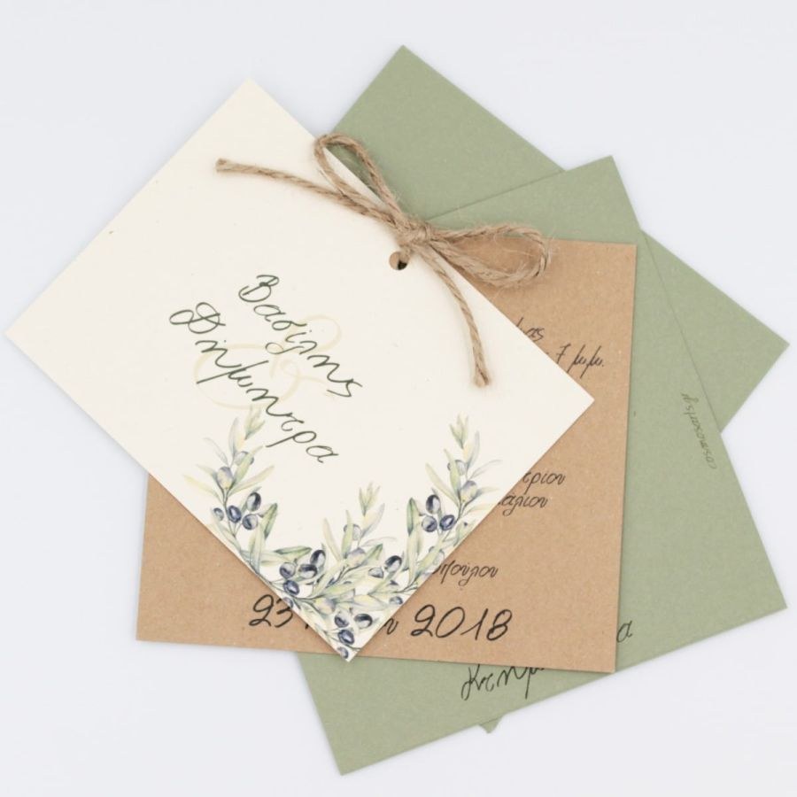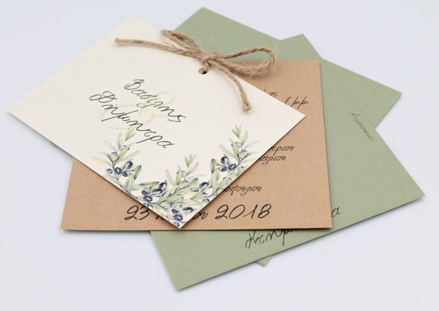 Πρωτότυπο προσκλητήριο γάμου με τριπλή κάρτα και θέμα την ελιά!