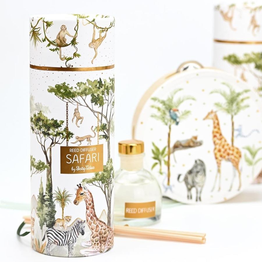 Χαρίστε μια γλυκιά και τρυφερή αίσθηση με το αρωματικό χώρου με θέμα το safari και άρωμα Baby Musk, ιδανικό για ξεχωριστές στιγμές.