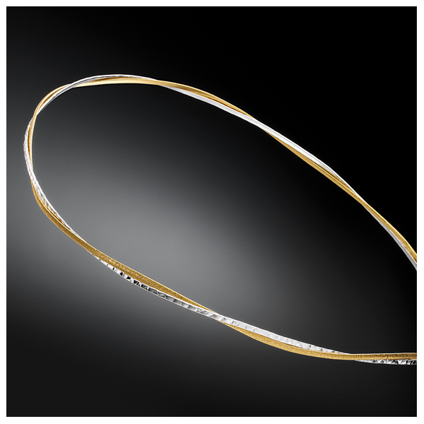 Ασημένια στέφανα γάμου με ασημένια σφυρίλατη πλάκα πλεγμένη με επιχρυσωμένη βέρα μαρτιλέ.