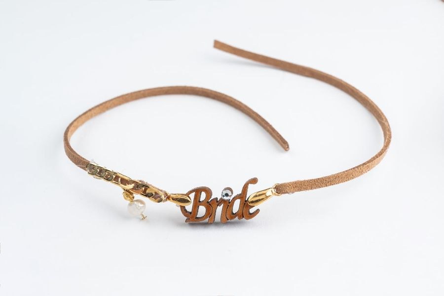 Βραχιόλι με σουετ μπεζ κορδονι και αλυσίδα. Διατίθεται σε bride, maid of honor και bachelorittas.