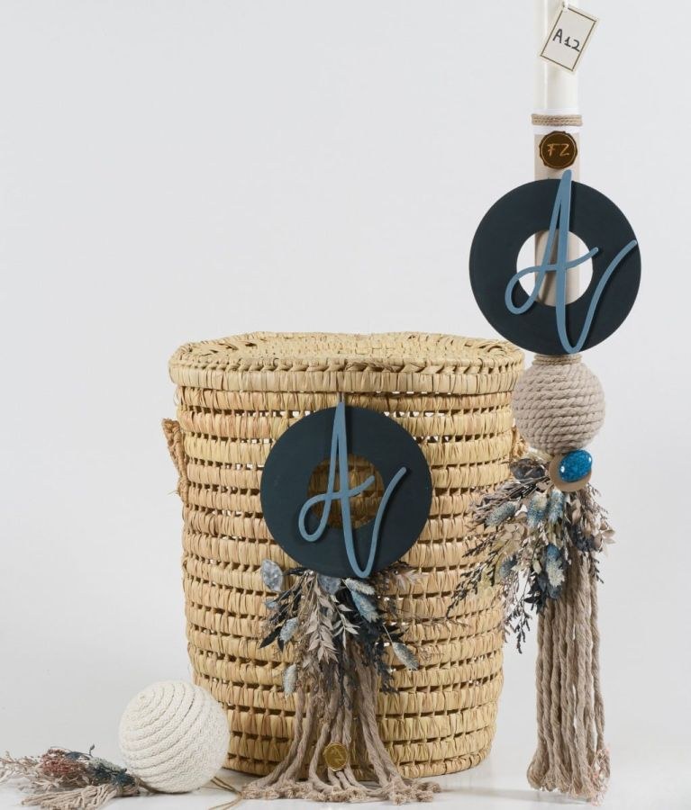 Σετ βάπτισης για αγόρι και περιλαμβάνει καλάθι ψάθινο, λαμπάδα και λαδοσέτ.