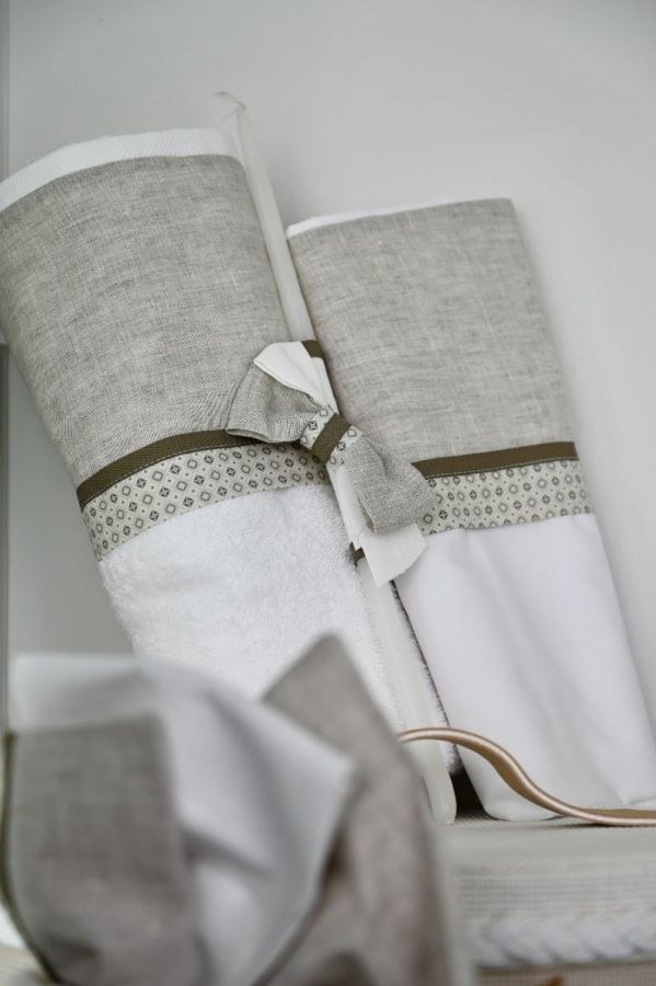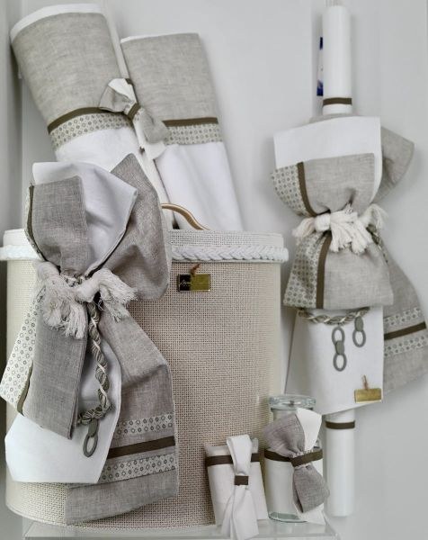 Βαπτιστικά πακέτα για αγόρι από την Stova Bambini που περιλαμβάνουν καλάθι, φιόγκο, λαμπάδα, λαδοσέτ και λαδόπανα.