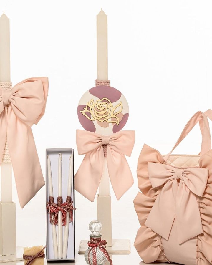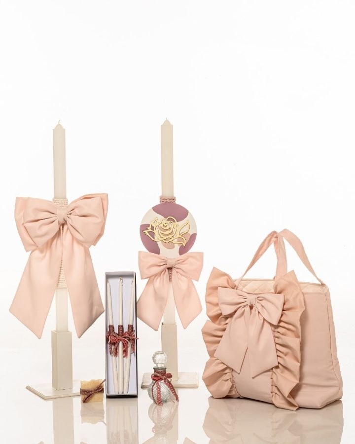 Σετ βάπτισης για κορίτσι με τσάντα και plexiglass, λαμπάδα και λαδοσέτ.