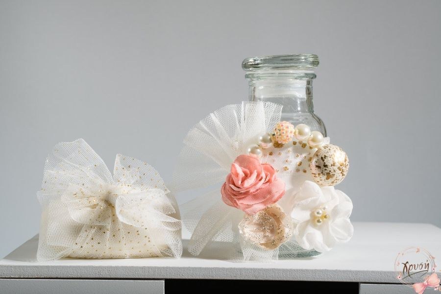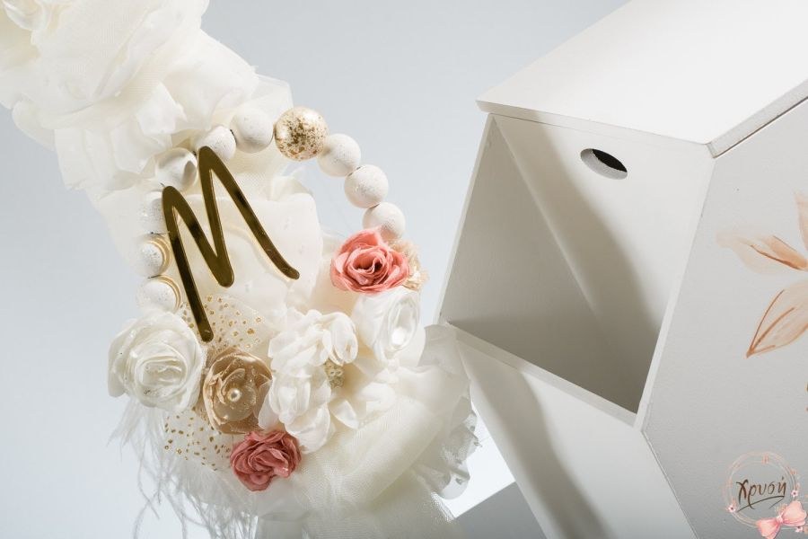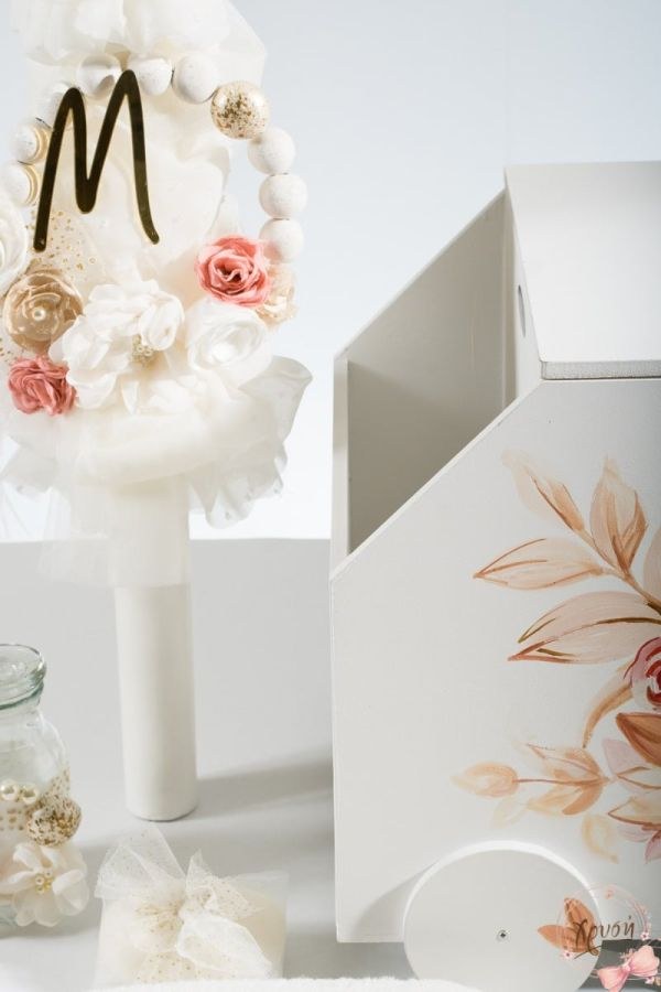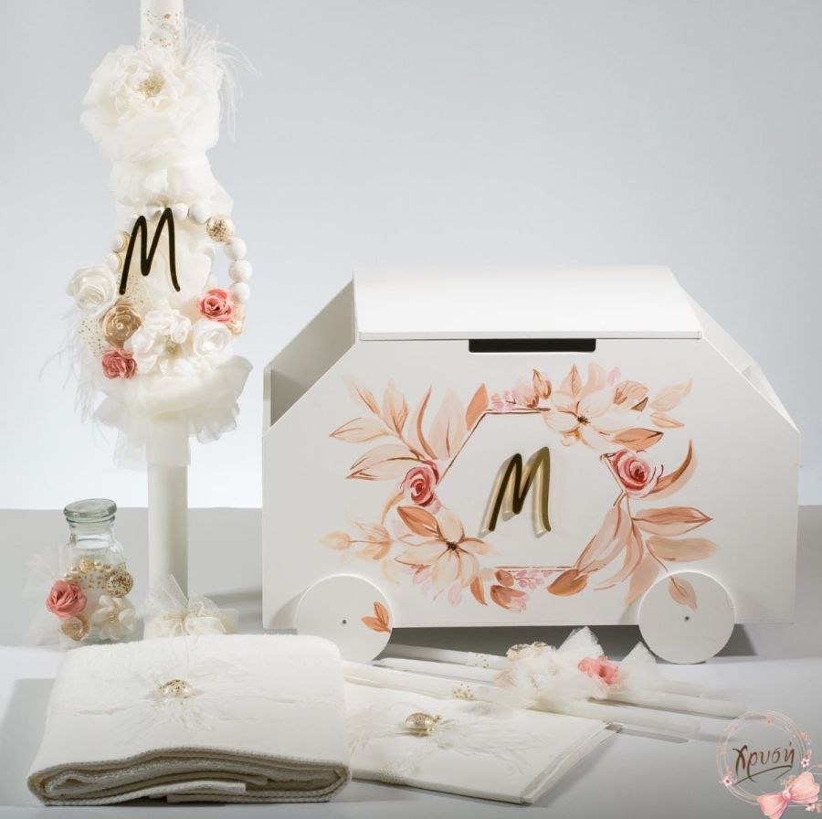 Βαπτιστικά πακέτα που περιλαμβάνουν κουτί με θήκες ζωγραφισμένο, λαμπάδα με κύκλο και χάντρες και λαδοσέτ.