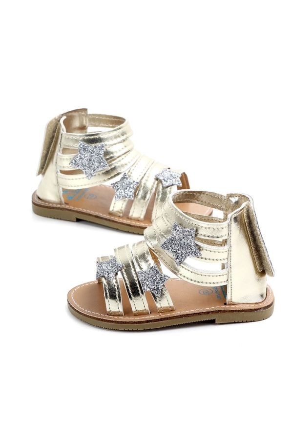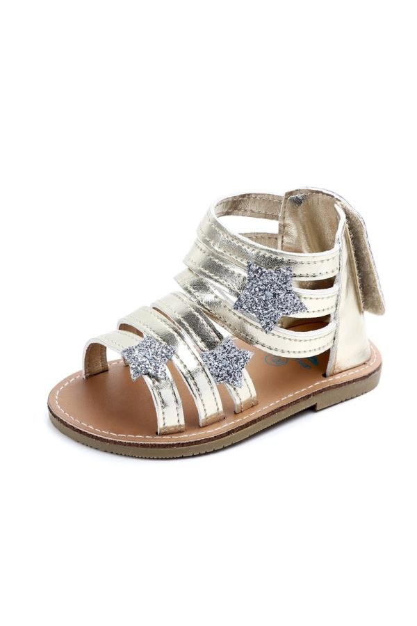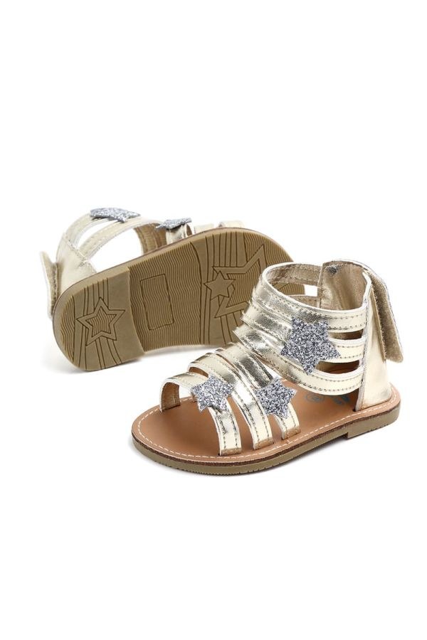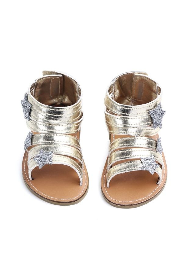 Βαπτιστικά παπουτσια αγκαλιας χρυσα πεδιλα με ασημι αστερια