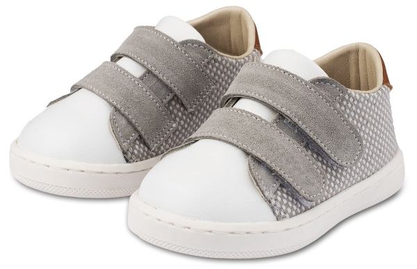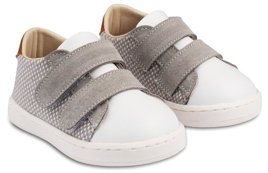 Τρίχρωμο Σνίκερ Διπλή Μπαρέτα Χρατς απο Δέρμα και Ύφασμα σε μπεζ, μπλε, γκρι χρώμα.