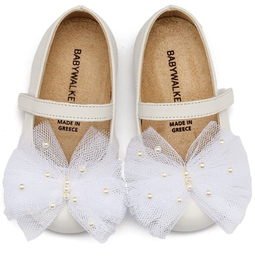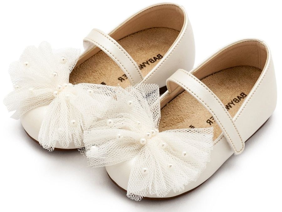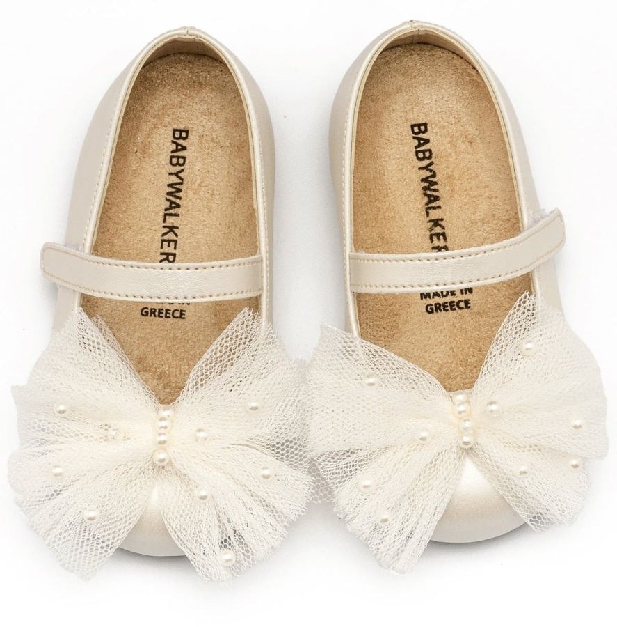 Γοβάκι με Τούλινο Χειροποίητο Φιόγκο και Πέρλες σε Εκρού και λευκό Χρώμα.