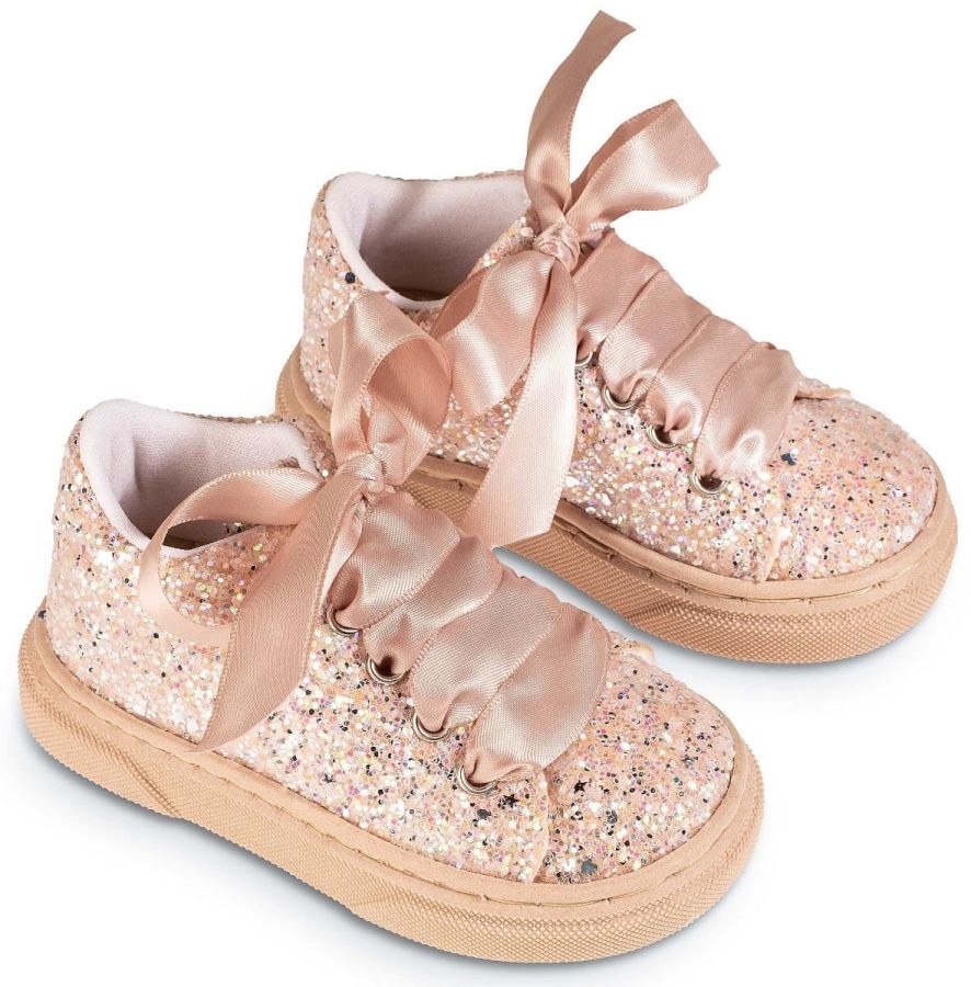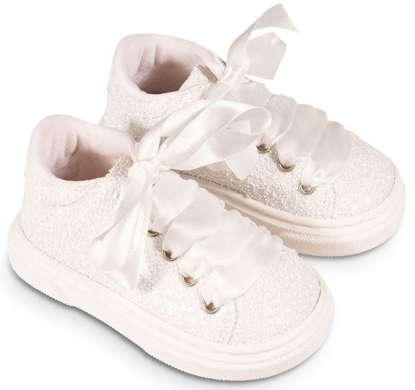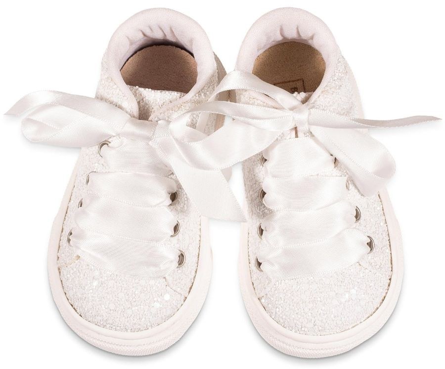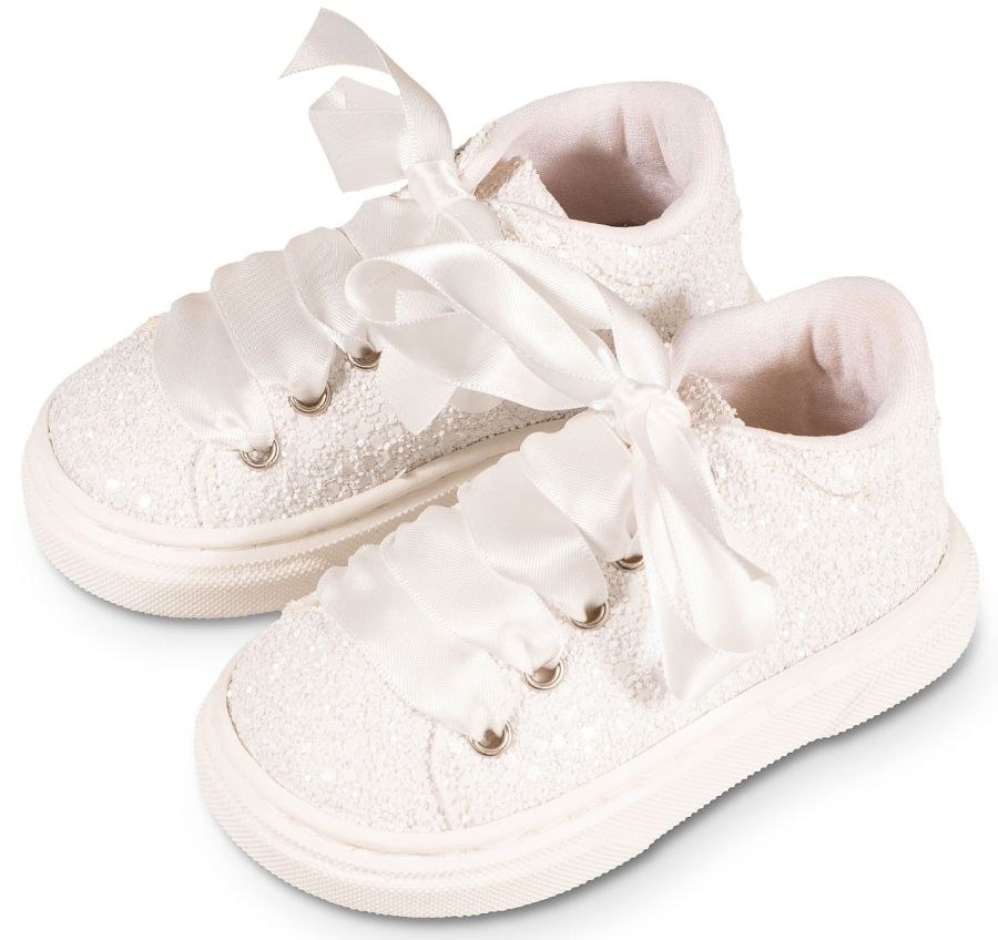 Δετό Σνίκερ από Ύφασμα Γκλίτερ σε Λευκό χρώμα, το οποίο μπορείτε να συνδυάσετε με βαπτιστικά ρουχαλάκια για κορίτσι
