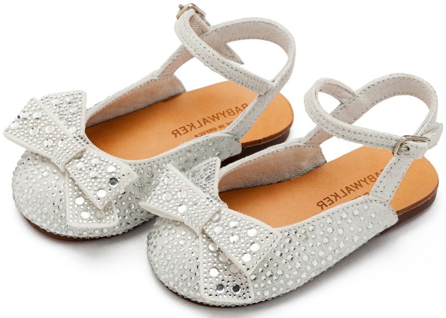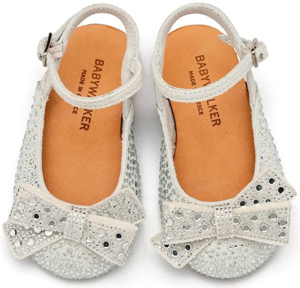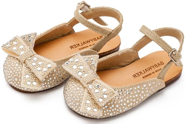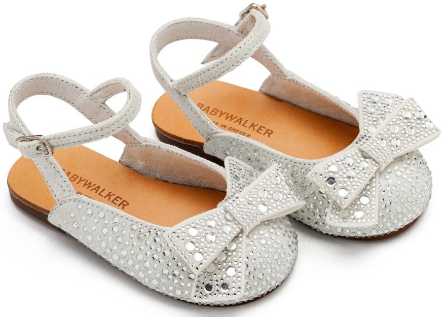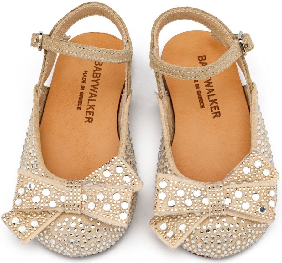 Δερμάτινο Σαμπό Διακοσμημένο Ολόγυρα με Στρας και Φιόγκο σε Μπεζ και λευκό Χρώμα.