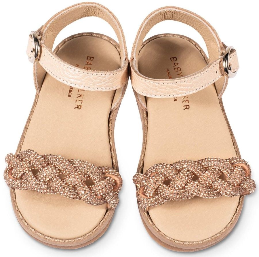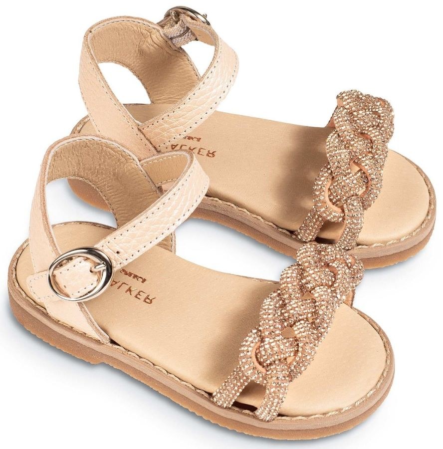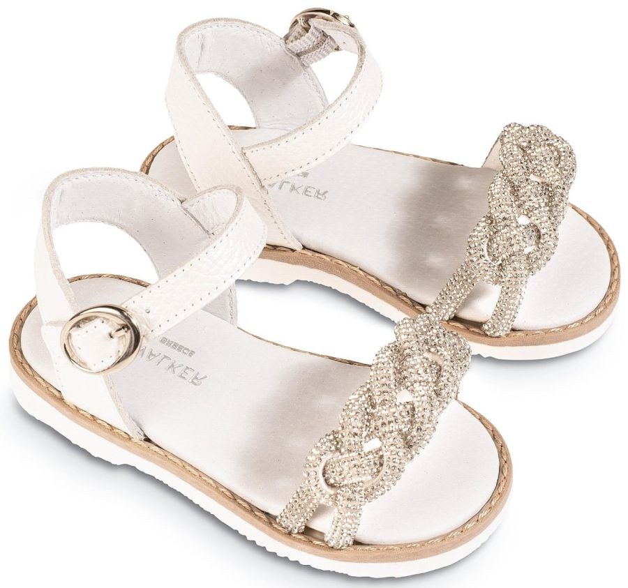 Δερμάτινο Σανδάλι από δέρμα περλέ σταμπωτό ,με διακοσμητική πλεξούδα από στρας σε νουντ και λευκό χρώμα!