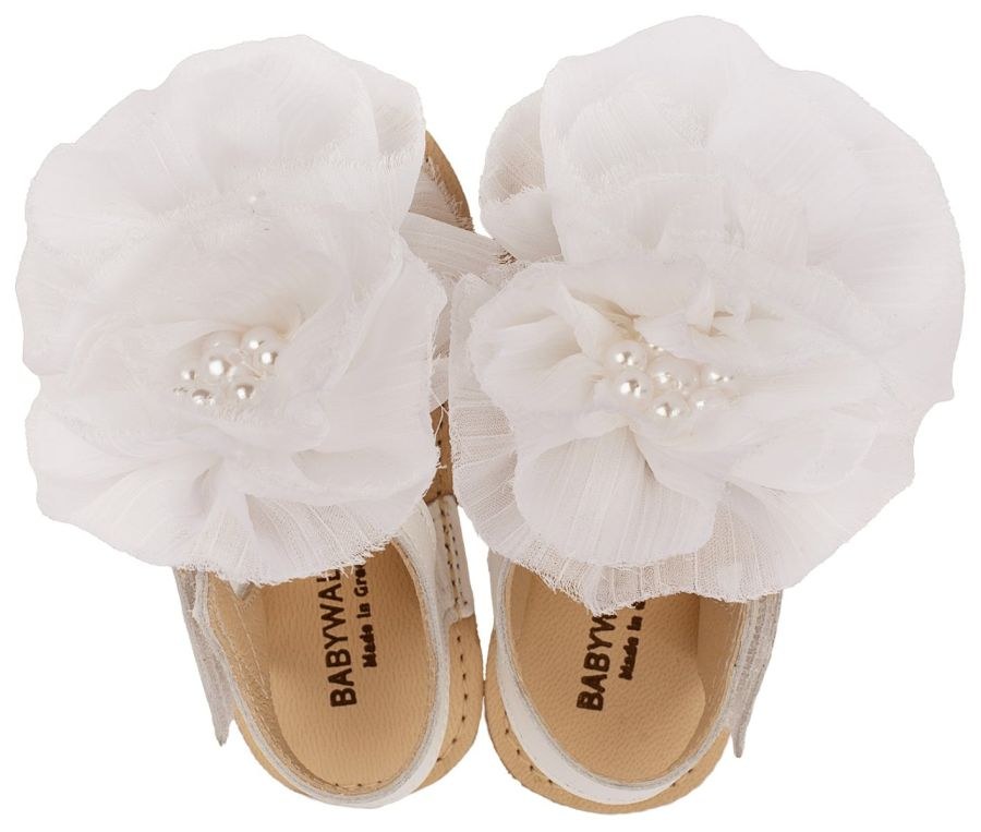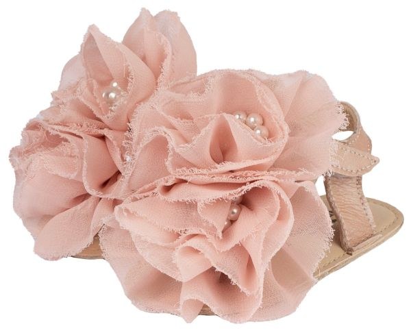 Δερμάτινο Πέδιλο Chiffon Λουλούδια σε Λευκό, Εκρου και ροζ Χρώμα.