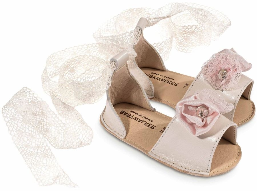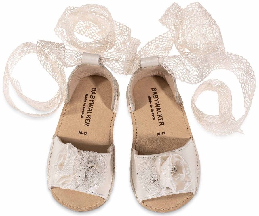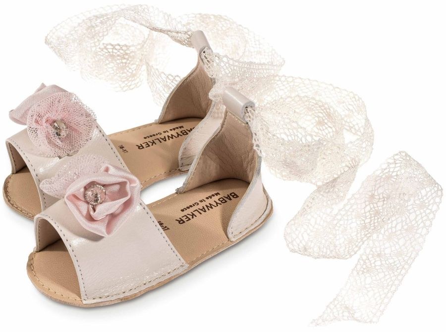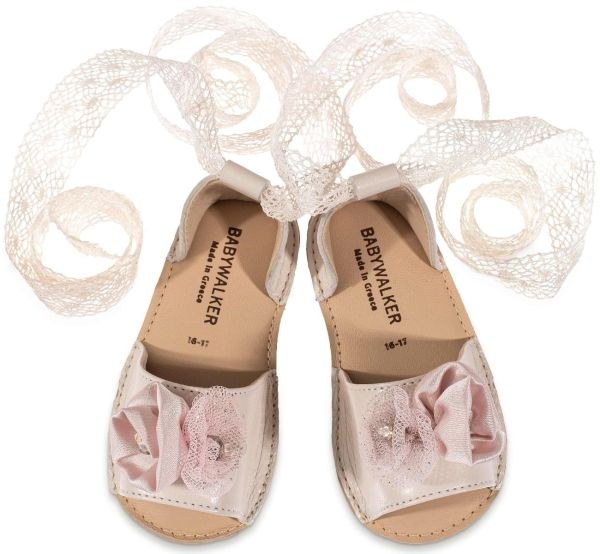 Δερμάτινο Δετό Pip Toe με Χειροποίητο Διακοσμητικό με Λουλούδια σε Εκρού και ροζ χρώμα.