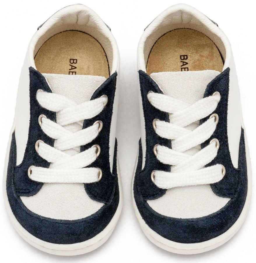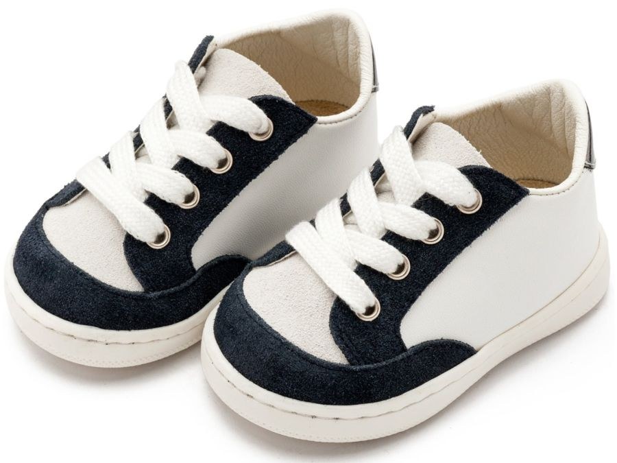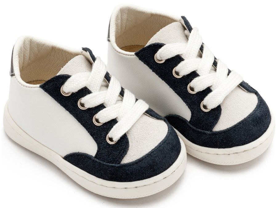 Δίχρωμο Δερμάτινο Δετό Sneakers σε Λευκό Μπλε και λευκό μπεζ χρώμα. Συνδυάστε τα με μοναδικά βαπτιστικά ρούχα για αγόρι από Stova Bambini και Babywalker!.
