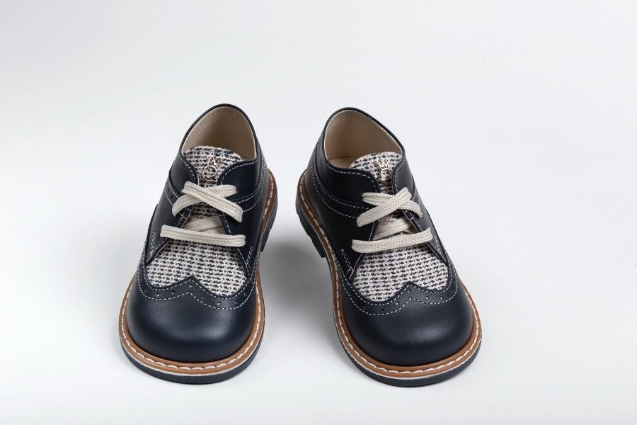 Παπούτσι περπατήματος χαμηλό brogues δετό, από μπλε navy δέρμα και μπλε-μπεζ ύφασμα