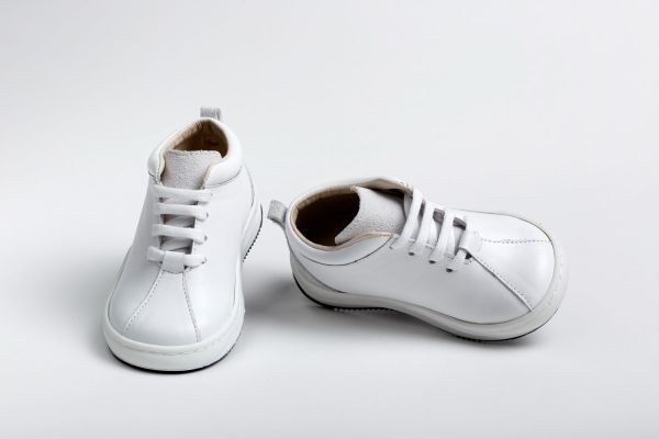 Βαπτιστικά παπούτσια περπατήματος sneaker ferox δετό, από λευκό δέρμα.