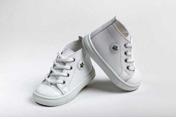 Βαπτιστικά παπούτσια μποτάκι περπατήματος δετό από λευκό δέρμα.