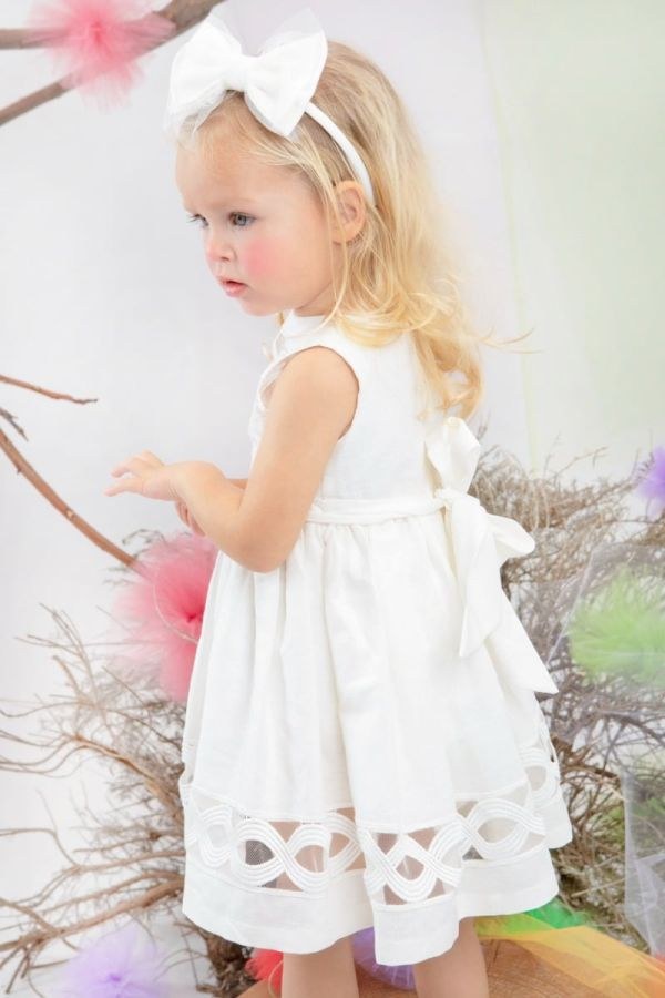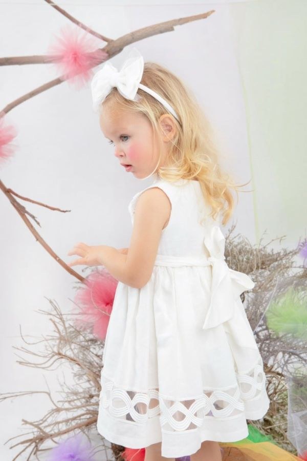 Η Loxandra είναι ένα εκρού λινό φόρεμα με εξαιρετική βαμβακερη broderrie δαντέλα στην φούστα και στο μπούστο τοσο απλο και τοσο chic ταυτοχρονα . Το συνολο το συμπληρωνει μια χειροποιητη στέκα για το κεφάλι με διπλό λινό εκρού φιόγκο.