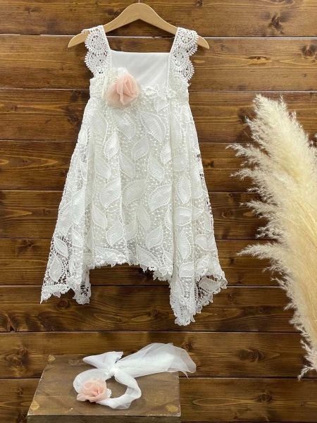 Κηπούρ δαντέλα με ασύμμετρο και κορδέλα.