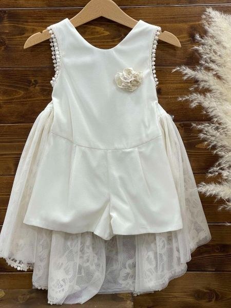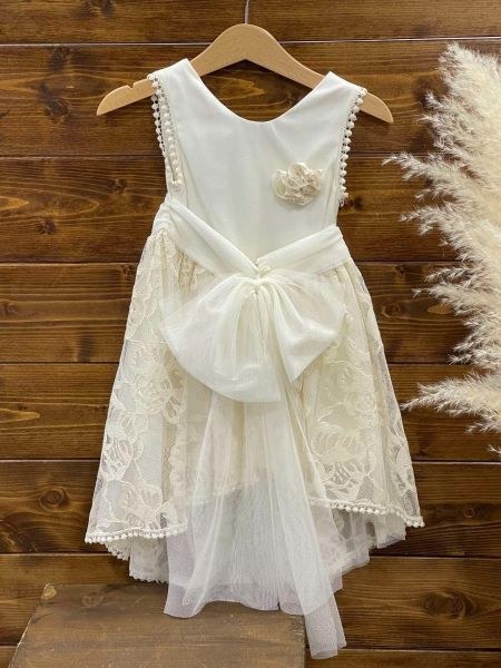 Βαπτιστικό φόρεμα ιβουάρ σαλοπέτα και ουρά από δαντέλα.