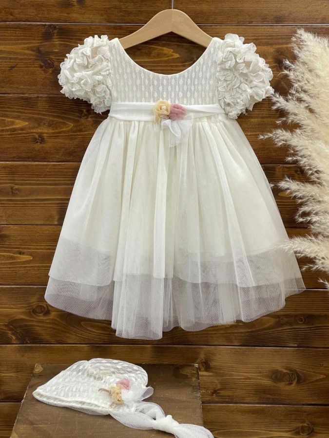 Βαπτιστικό φόρεμα ιβουάρ τούλι και μπαντάνα.