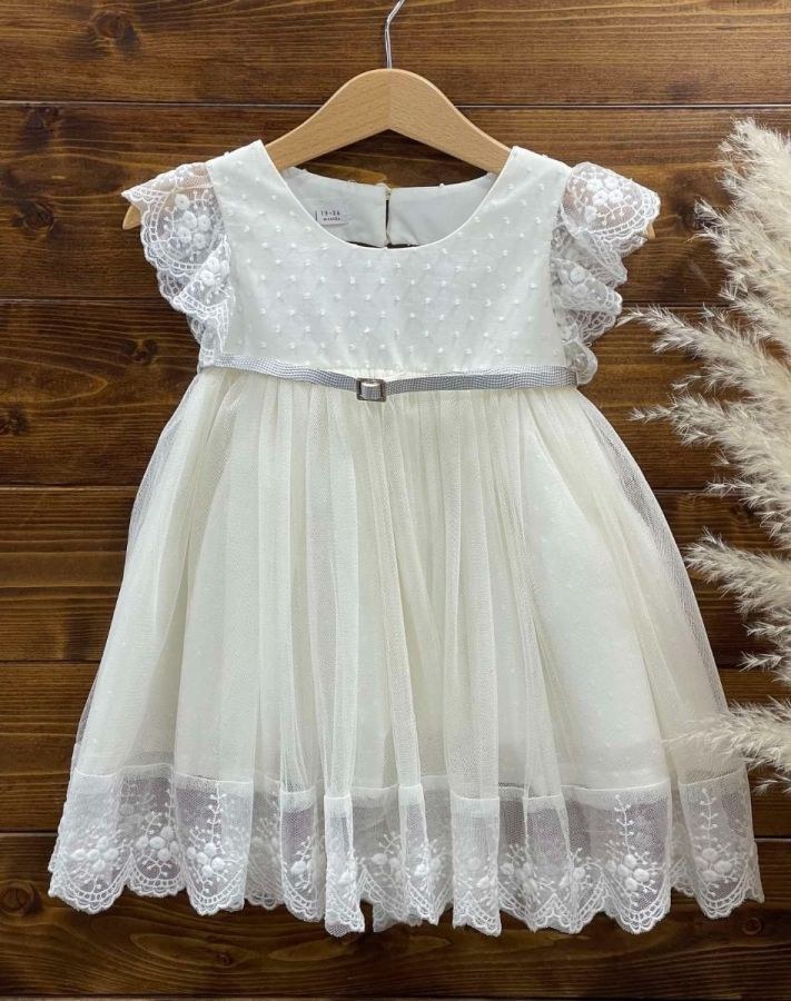Βαπτιστικό φόρεμα με τούλι και δαντέλα off white.