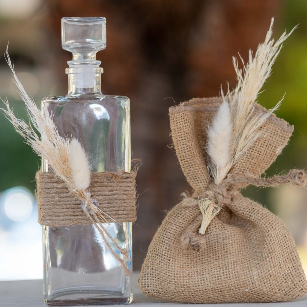 ενώ την παράσταση έκλεψαν και τα βαπτιστικά πακέτα, με την βαλίτσα στολισμένη με το μονόγραμμα και το pampas grass!