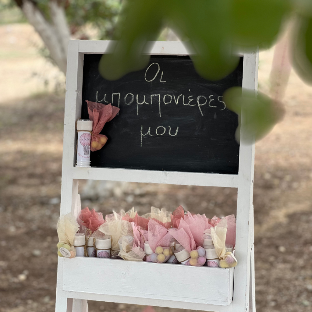 Με το πέρας του μυστηρίου, μπομπονιέρες βάπτισης σε πλήρη χρωματική αρμονία με τη διακόσμηση της βάπτισης, υποδέχθηκαν τους καλεσμένους της μικρής Ειρήνης - Αντωνίας!