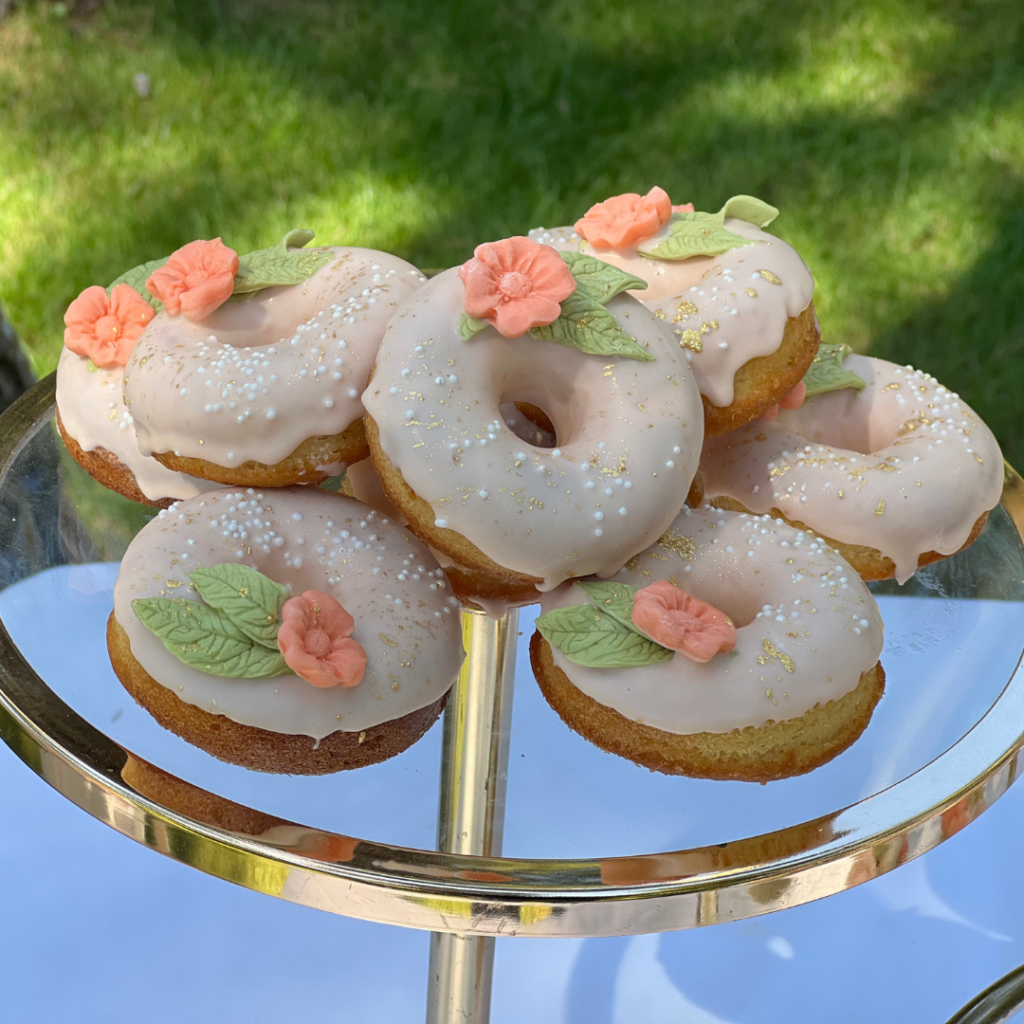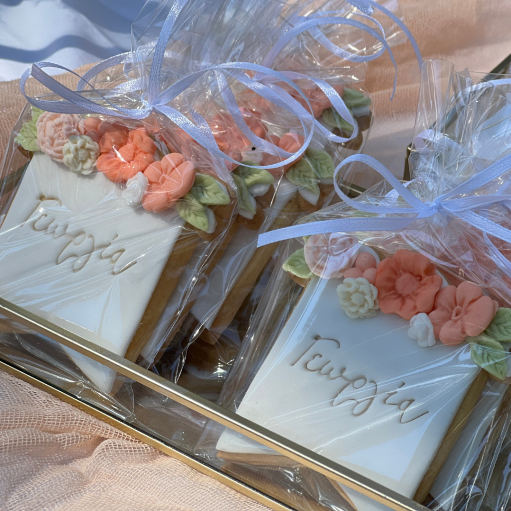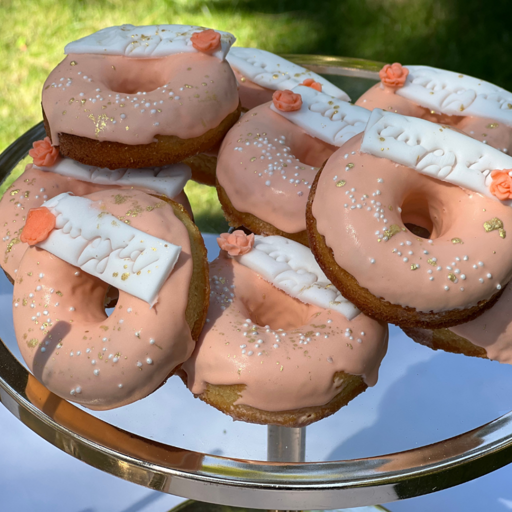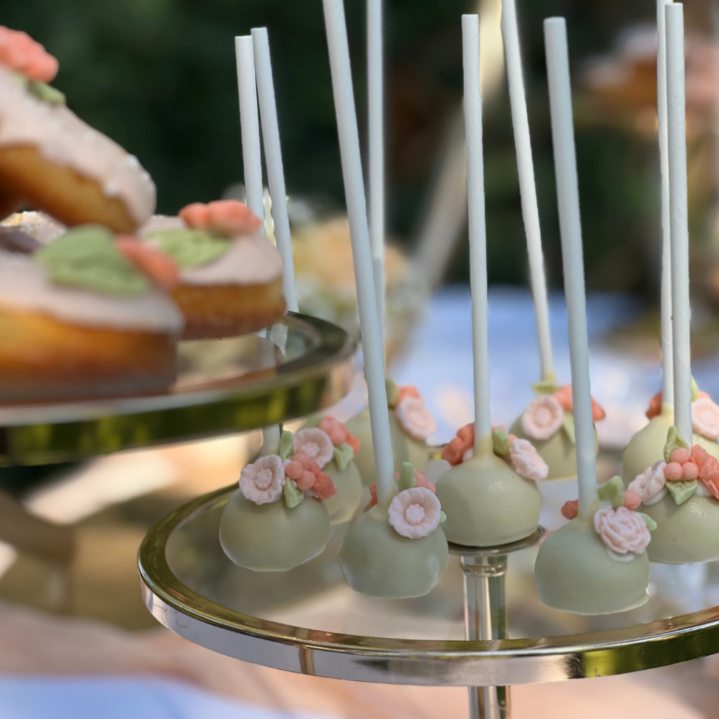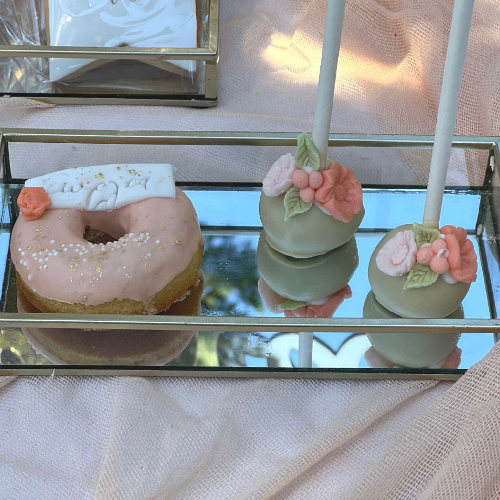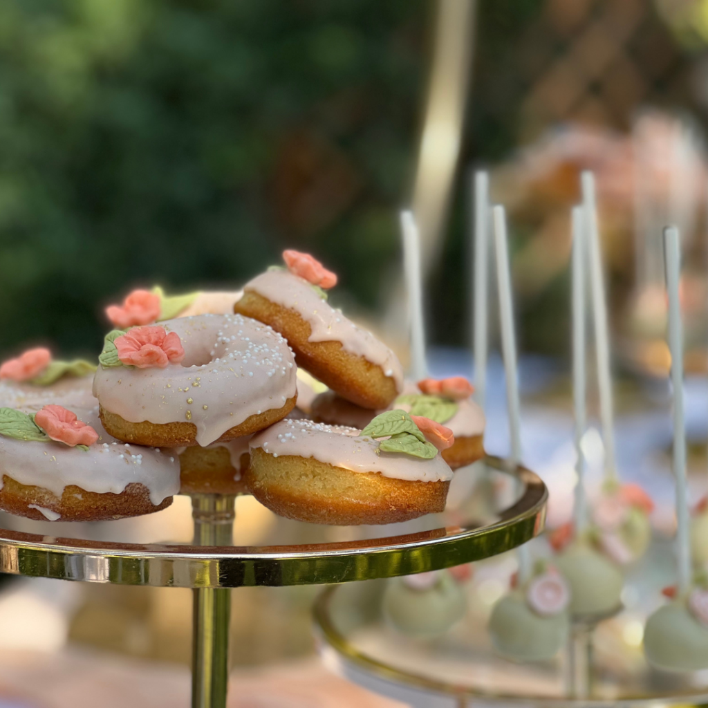 Ντόνατς, μπισκότα και cakepops, φτιαγμένα με ακρίβεια στη λεπτομέρεια, σε αποχρώσεις του σωμόν, του πράσινου και του λευκού, και θεματικά συνδυασμένα με το στολισμό της βάπτισης, άφησαν το δικό τους μοναδικό αποτύπωμα πάνω στο candy bar, αλλά και τη διακόσμηση της βάπτισης! Οι μοναδικές δημιουργίες του pastry chef μας, τα αέρινα υφάσματα σε απαλές αποχρώσεις, και ο χρυσός κρίκος, αυτό το σύμβολο ολότητας, ενότητας, απείρου, συνέθεσαν ένα εντυπωσιακό candy bar βάπτισης, που υποδέχθηκε τους καλεσμένους της δεξίωσης και ανέδειξε με τον ομορφότερο τρόπο την προσωπικότητα της μικρής Γεωργίας!
