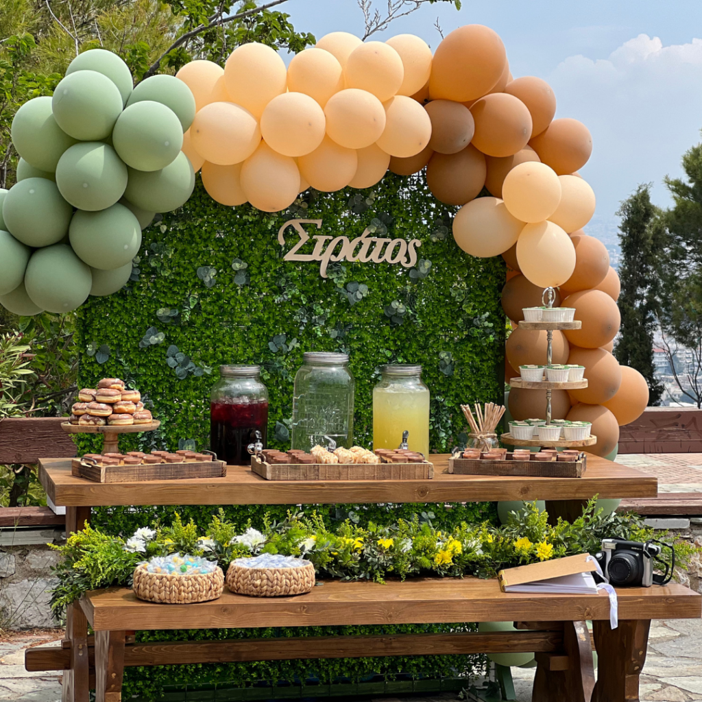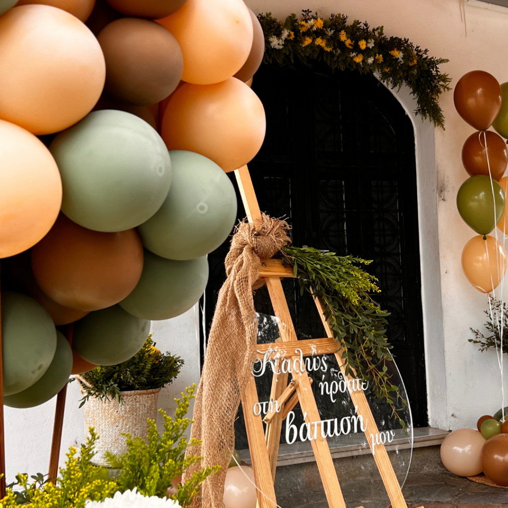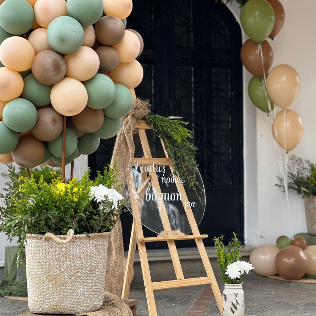 Με τα μπαλόνια και τα λουλούδια να προσδίδουν παιδικότητα και τις ρουστίκ πινελιές, αριστοκρατικότητα, η ομάδα μας δημιούργησε μία από τις πιο όμορφες διακοσμήσεις που έχετε δει στη βάπτιση του μικρού Στράτου!