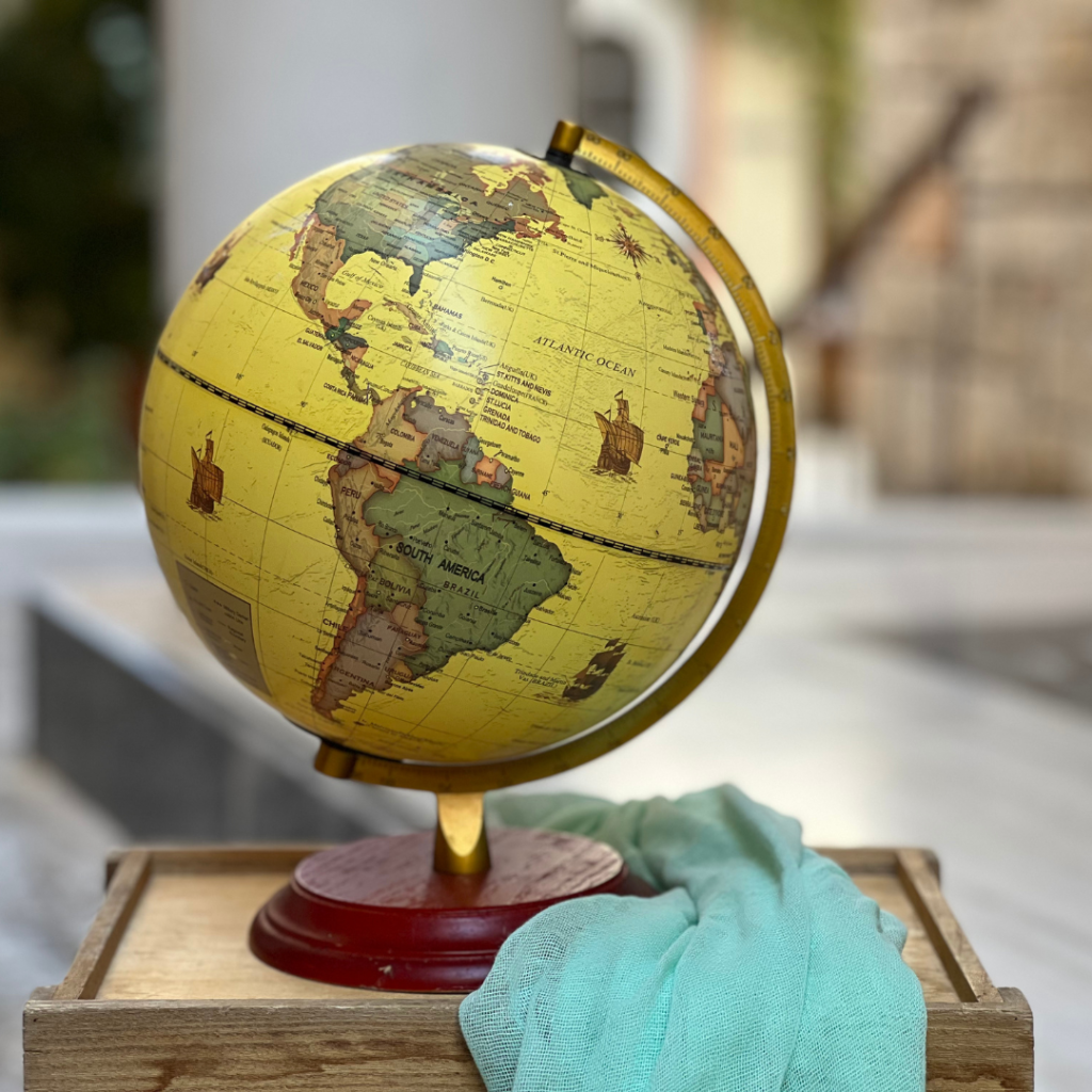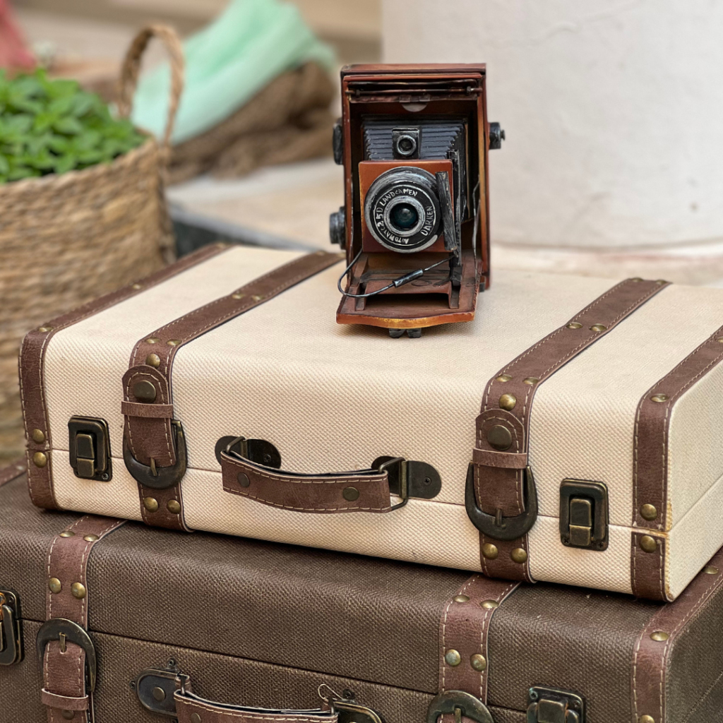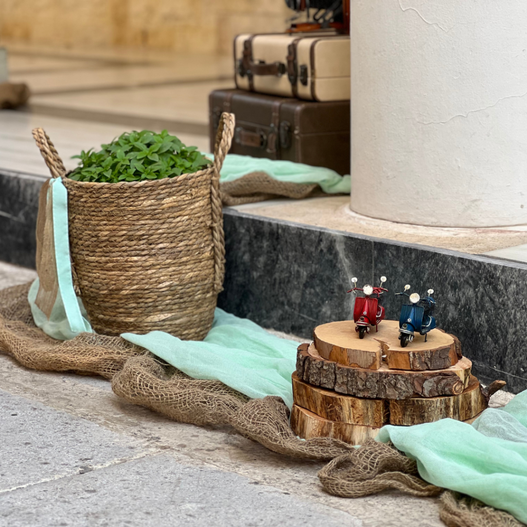 Vintage βαλίτσες, υδρόγειες σφαίρες, χάρτες, βιβλία, φωτογραφικές μηχανές και μυρωδάτα λουλούδια, σε συνδυασμό με τις λινάτσες και τα αέρινα υφάσματα, έδωσαν ένα ξεχωριστό χρώμα στη βάπτιση του μικρού Φίλιππου!