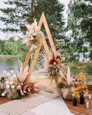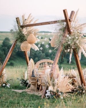 Το altar σε έναν boho γάμο λειτουργεί ως οπτικό και τελετουργικό επίκεντρο, ένα είδος «πλαισίου» μέσα στο οποίο εγγράφεται η ένωση του ζευγαριού. Μακραμέ backdrops, κρεμαστές ονειροπαγίδες, ξύλινες αψίδες με ανθοσυνθέσεις pampas και αγριολούλουδων συνθέτουν μια σκηνογραφία που υπογραμμίζει την τελετή ως ιεροπρακτική εμπειρία, ακόμη κι όταν στερείται θρησκευτικού χαρακτήρα. Ο διάδρομος, με μπουκάλια–βάζα γεμάτα λουλούδια, κεριά, ροδοπέταλα ή μικρές κεραμικές γλάστρες, επιτελεί έναν διπλό ρόλο: κατευθύνει τη ροή των σωμάτων στον χώρο και ταυτόχρονα προετοιμάζει συναισθηματικά τους καλεσμένους για τη μετάβαση σε ένα «άλλο» συμβολικό πεδίο. Η χρήση φωτισμού (fairy lights, φαναράκια, Edison bulbs) ενισχύει την αίσθηση τελετουργικότητας, μετατρέποντας τον χώρο σε σκηνικό «οριακής εμπειρίας» μεταξύ καθημερινότητας και μύθου.