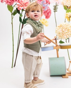 Η χρωματική παλέτα που υιοθετείται στην παρούσα συλλογή σηματοδοτεί την οριστική απομάκρυνση από τον μονοδιάστατο παιδικό φορμαλισμό, προκρίνοντας αποχρώσεις που αντλούν την έμπνευσή τους από την οργανική φύση και τη μεσογειακή εντοπιότητα. Η κυριαρχία των γήινων τόνων, όπως το πλούσιο ταμπά, η ώχρα, το λαδί sage και το χρώμα της άμμου, δημιουργεί μια αίσθηση "Organic Luxury", η οποία προσδίδει στον μικρό πρωταγωνιστή μια εικόνα αρχοντικής ηρεμίας και αυθεντικότητας. Ταυτόχρονα, η επανεφεύρεση του κλασικού navy blue μέσω της αλληλεπίδρασής του με το ψυχρό γκρι του πάγου και το καθαρό λευκό του λινού, προσφέρει μια σύγχρονη εκδοχή του "Modern Navigator", η οποία ισορροπεί ιδανικά ανάμεσα στη στιβαρότητα και τη φωτεινότητα. Η επιλογή αυτών των χρωμάτων λειτουργεί ως ένας κώδικας που υποδηλώνει μια επιστροφή στις αξίες της χειροποίητης δημιουργίας, στοιχεία που αποτελούν το ζητούμενο για τους γονείς που αναζητούν επώνυμα βαπτιστικά ρούχα με διαχρονική αξία.
