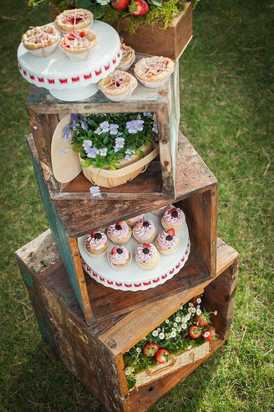 Για μια πιο ρουστίκ εμφάνιση candy bar γάμου, το ξύλο, τα φώτα και οι φλοράλ πινελιές φέρνουν τη ζεστασιά! Ξύλινοι δίσκοι με επιδόρπια, κεριά τσαγιού και φαναράκια ενωμένα με πράσινο είναι όλα όσα χρειάζεται κάποιος σε ένα μαγευτικό rustic candy bar.