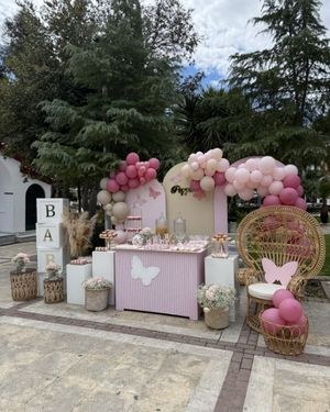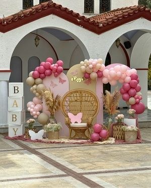 Η βάπτιση της μικρής Ρεγγίνας είναι ένα υπέροχο παράδειγμα για το πώς ένα τόσο τρυφερό θέμα, όπως η πεταλούδα, μπορεί να εξελιχθεί σε ολοκληρωμένο, σύγχρονο concept, με φιόγκους, μπαλόνια και προσεγμένες λεπτομέρειες σε κάθε γωνιά. Η αισθητική κινείται σε παστέλ ροζ, blush και κρεμ τόνους, με φυσικές υφές (ψάθα, ρατάν, ύφασμα) που ισορροπούν τη γλυκύτητα του θέματος.