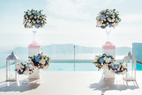 Η μαγευτική θέα από την καλντέρα της Σαντορίνης μπορεί να γίνει ακόμα πιο ειδυλλιακή όταν ο στολισμός γάμου γίνει με τέτοιο τρόπο όπου θα την αναδείξει περισσότερο. Ο στολισμός γάμου σε νησί θα πρέπει να ακολουθεί την απλότητα αλλά και την πολυτέλεια που αρμόζει σε εκείνη την ιδιαίτερη μέρα. Άρα ο στολισμός γάμου στη Σαντορίνη δεν θα μπορούσε να είναι κάτι λιγότερο από ρομαντικός με μια χαλαρή αίσθηση πολυτέλειας!