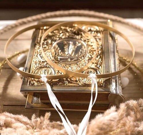 Οι εσωτερικοί στολισμοί εκκλησίας για γάμο, συνήθως είναι πιο minimal. Φυσικά μια safe και εντυπωσιακή επιλογή είναι τα stands με τις λαμπάδες και τα μπουκέτα λουλουδιών και φυτών. Οι κορδελίτσες και κάποια λεπτά υφάσματα ( πχ. τούλι) κοσμούν όλη την ατμόσφαιρα και ολοκληρώνουν την διακόσμηση με τρόπο διακριτικό αλλά εντυπωσιακό.    Μια   κρυστάλλινη    καράφα    γάμου,    ένας  υπέροχος ασημένιος   δίσκος   γάμου,   δύο   γαμήλια   εντυπωσιακά  κρυστάλλινα ποτήρια και φυσικά δύο μοναδικά στέφανα γάμου θα είναι οι λεπτομέρειες που θα κάνουν την διαφορά.