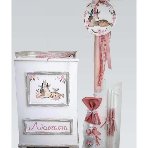 Μια συρταριέρα σετ με βαλίτσα, το λαδοσετ και την λαμπάδα επίσης μπορεί να είναι μια επιλογή που δεν γίνεται να μην εκτιμηθεί. Έπειτα από παραγγελία μπορεί να δημιουργηθεί το κατάλληλο κομμάτι το οποίο να ανταποκρίνεται ακριβώς στις επιθυμίες του ενδιαφερόμενου. Αυτό το βαφτιστικό πακέτο θα μείνει αξέχαστο.