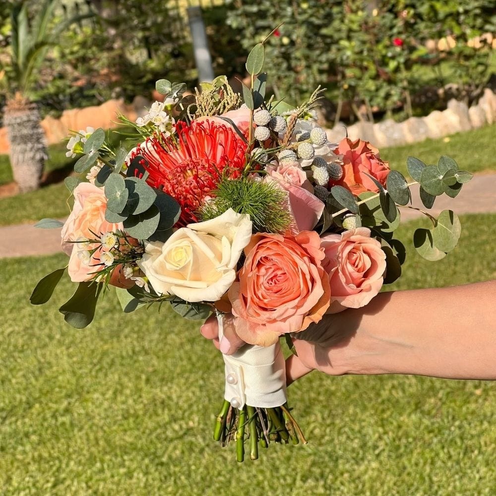 Νυφική ανθοδέσμη σε ροδακινί αποχρώσεις