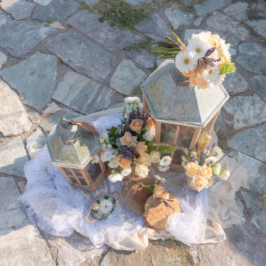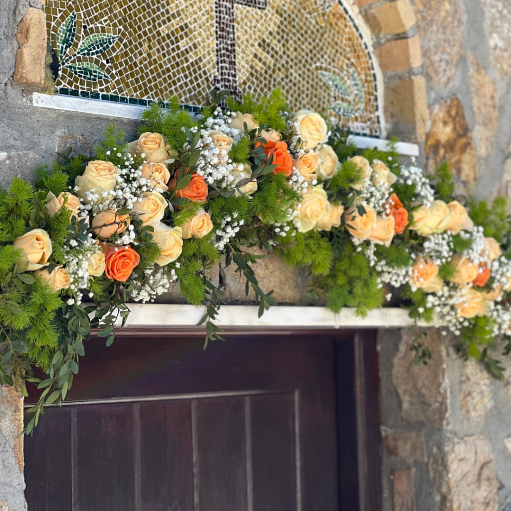Όποια εποχή κι αν επιλέξεις να γίνει το μυστήριο, μπορείς να φροντίσεις ώστε τα λουλούδια να είναι σε ροδακινί χρώμα ή ένα μίγμα με ροδακινί λουλούδια (πχ τριαντάφυλλα) και λουλούδια σε ροζ ή κρεμ αποχρώσεις! Η συγκεκριμένη απόχρωση δίνει ένα ρομαντικό, απαλό και συνάμα κομψό ύφος στο γάμο ή στη βάπτιση!
