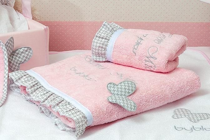 Σετ βρεφικές πετσέτες σε ροζ χρώμα και σχέδιο παιδικές φιγούρες. Κατασκευασμένες από 100% βαμβάκι 400γρ/τμ που τις καθιστά εξαιρετικά απαλές και απορροφητικές.