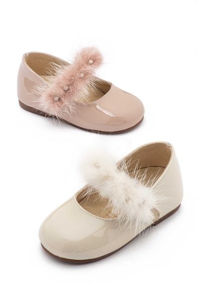 Λαμπερές μπαλαρίνες Babywalker σε γυαλιστερό λουστρίνι, με λουράκι Mary-Jane ντυμένο με απαλή faux-γούνα και διακριτικά κρύσταλλα. Ρομαντικές και ζεστές για φθινοπωρινές/χειμωνιάτικες βαπτίσεις, συνδυάζουν κομψότητα και άνεση χάρη στη μαλακή επένδυση και την εύκαμπτη, αντιολισθητική σόλα.
