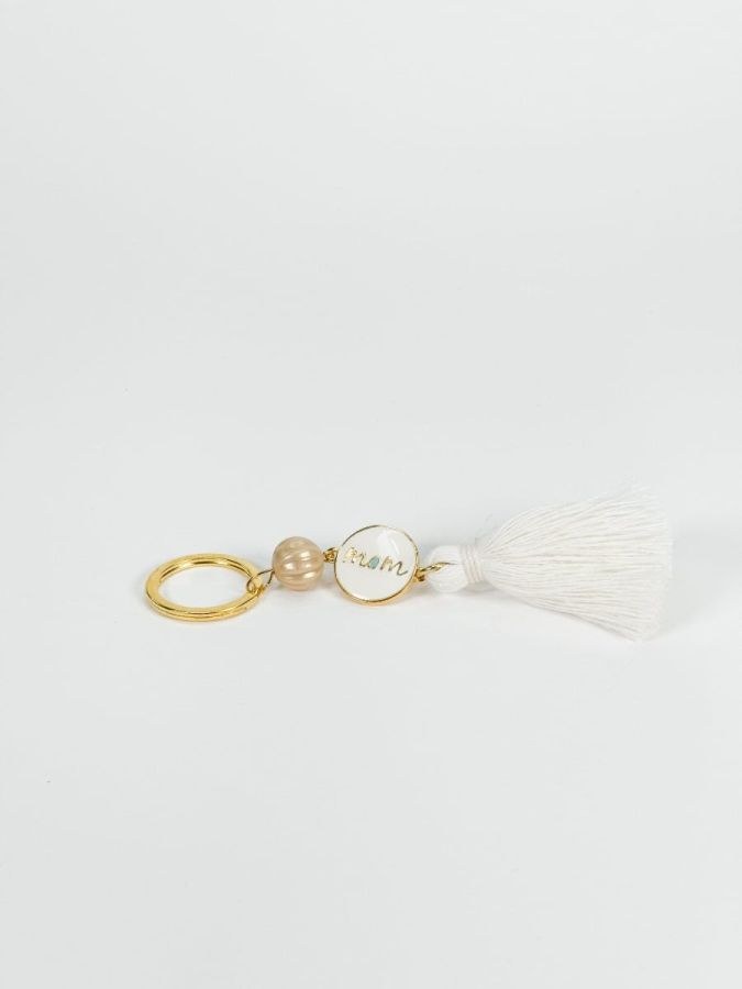 Μπρελοκ με μοτιφ mom και εκρού φούντα.