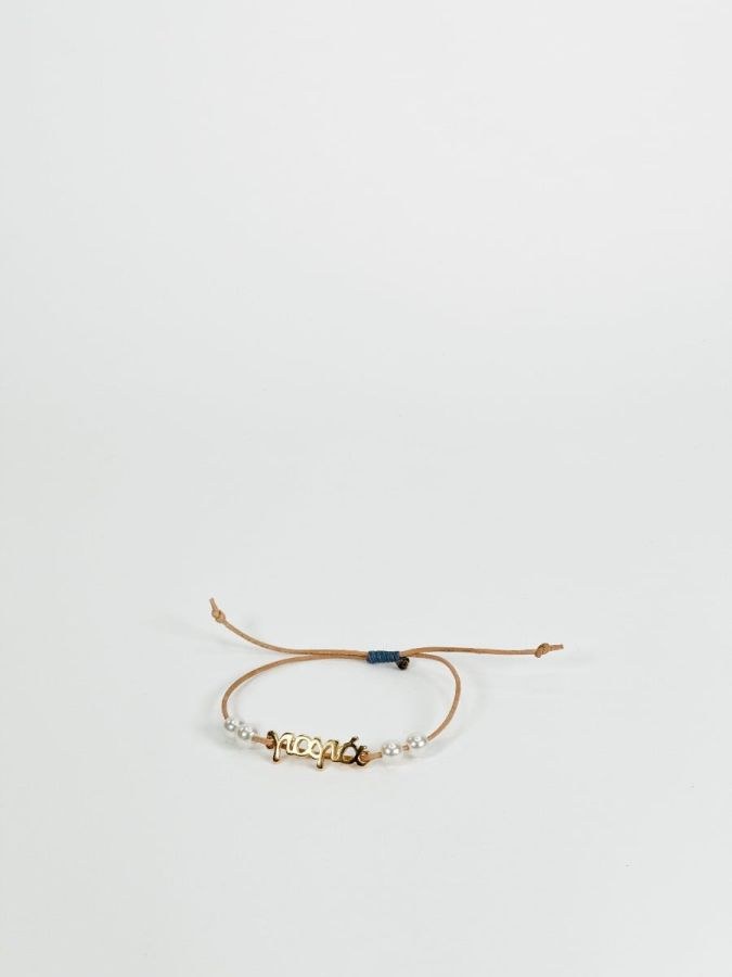 Βραχιολάκι μαμά,νονά,γιαγιά με πέρλες και μπλε δέσιμο.