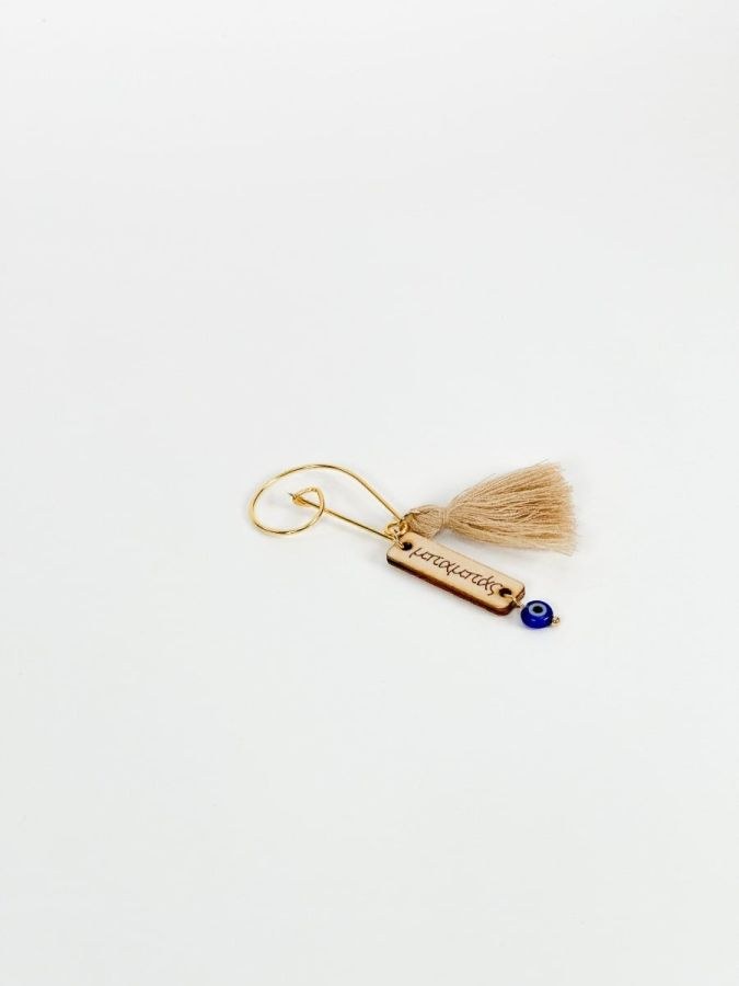 Πέτο με φούντα μπεζ,ξύλινο μοτιφ μπαμπάς,νονός,αδερφός,κουμπάρος,θείος,παππούς.