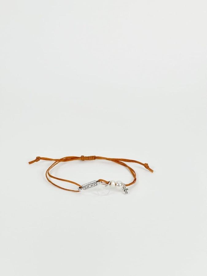 Βραχιολάκι μαμά νονά με ασημί μοτιφ και σταυρό.