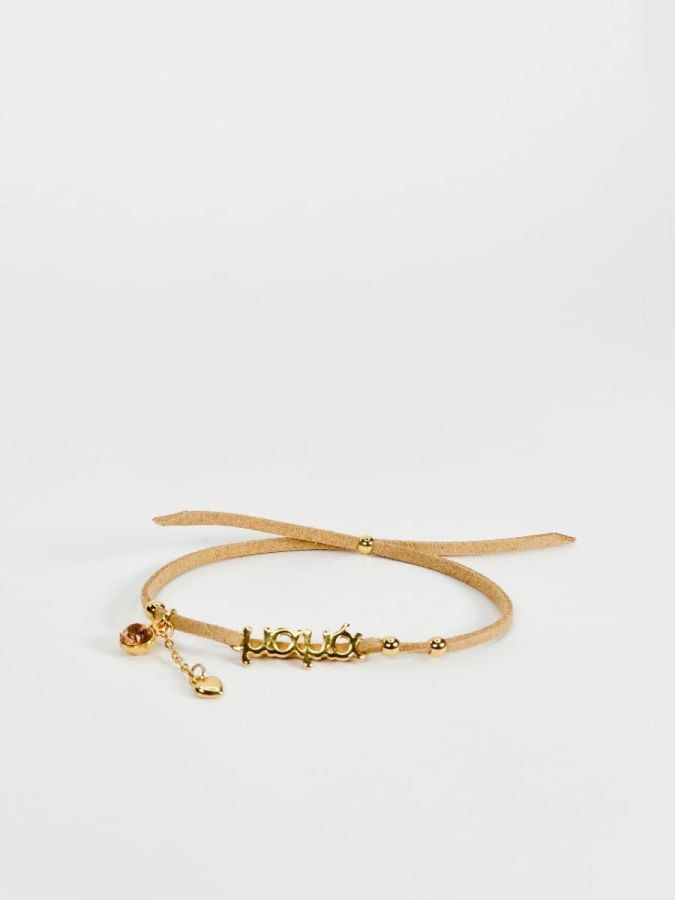 Βραχιόλι με μπεζ σουετ κορδόνι για την μαμά,την νονά και την γιαγιά.